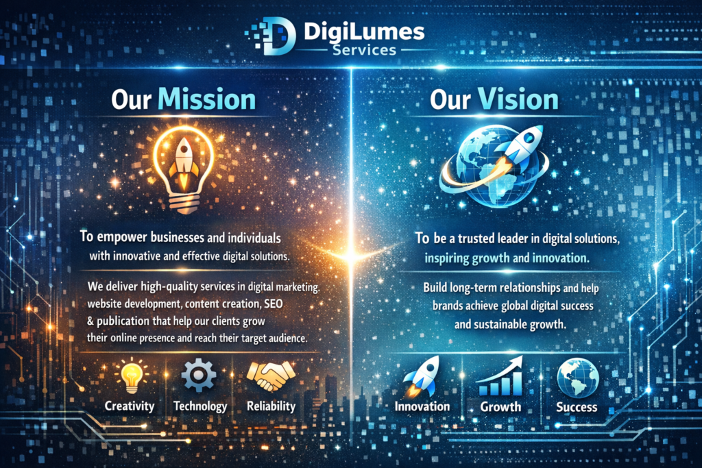 The mission of DigiLumes Services is to empower businesses and individuals by providing innovative and effective digital solutions. The vision of DigiLumes Services is to become a trusted and leading digital solutions company that helps businesses succeed in the online world.